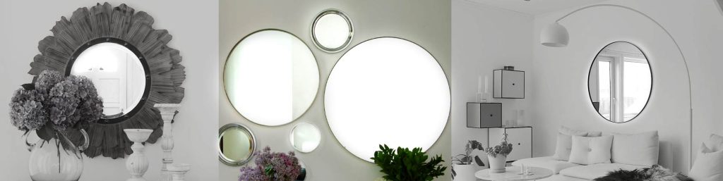 آینه های با اندازه و اشکال مختلف را به صورت متقارن یا نامتقارن بر روی دیوار آویزان کنید تا جلوه هنری ایجاد شود.